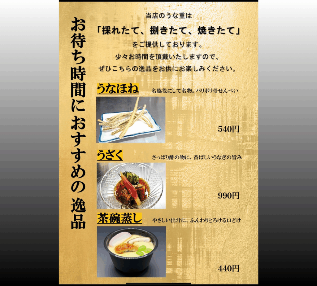 うな重をお待ちいただく間にお気軽にお楽しみいただけます。