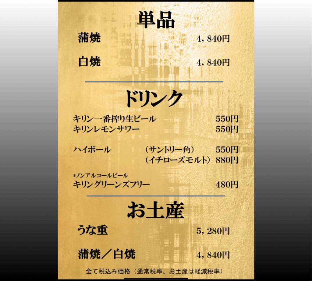 定番の「うな重」「蒲焼き定食」などの従来メニューはそのままに、