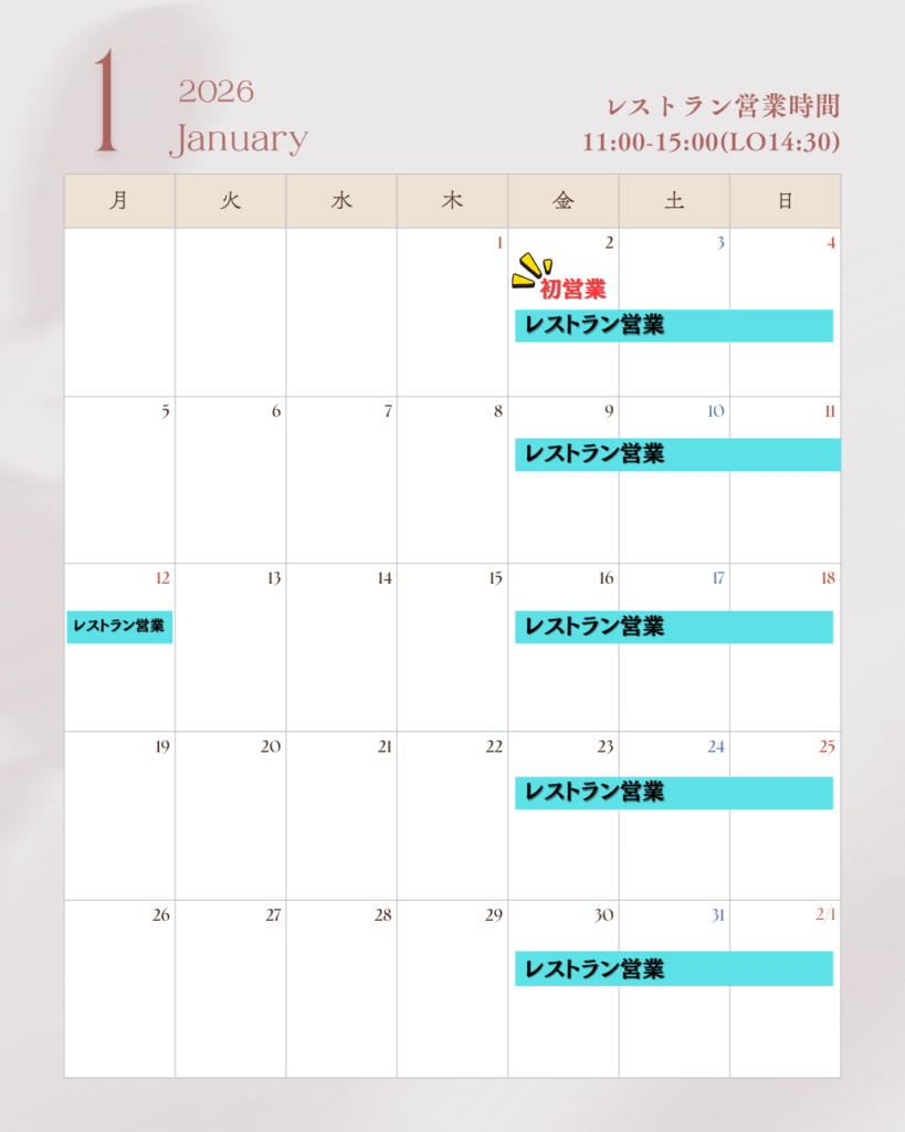 ※詳しい営業日程は、掲載の 1月営業カレンダー をご確認ください。