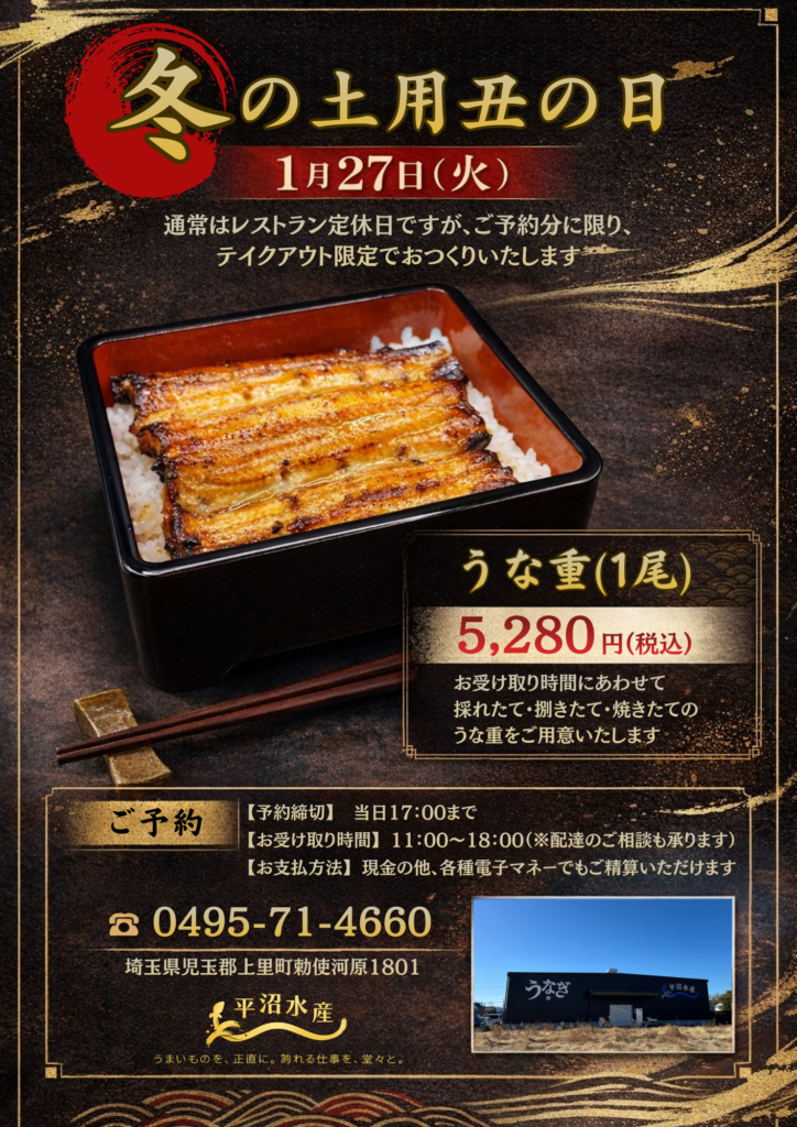 冬の土用丑の日(1月27日)|平沼水産のうな重テイクアウト【完全予約制】